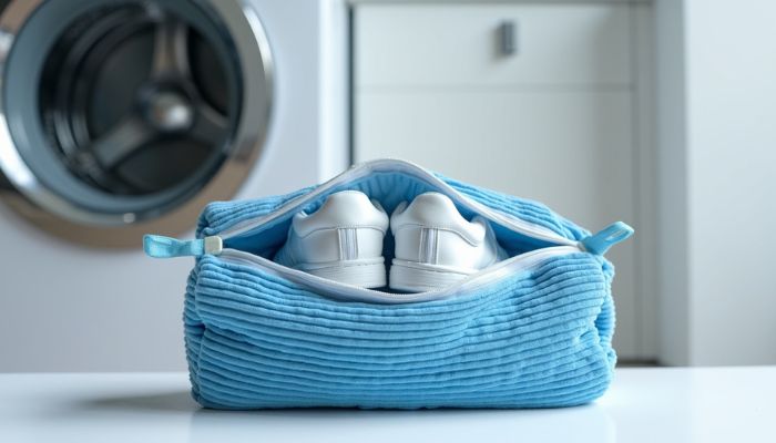 Protégez votre machine en lavant vos chaussures en toute sécurité.”